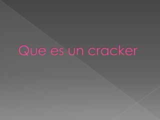 Este documento describe diferentes tipos de hackers y crackers. Define hackers como personas apasionadas por la seguridad informática que pueden encontrar vulnerabilidades para mejorar sistemas o también acceder sistemas de forma no autorizada. Describe crackers como aquellos que usan sus conocimientos para acceder sistemas de forma ilegal con el objetivo de robar información u otros fines maliciosos. Finalmente, explica diferentes tipos de virus informáticos y cómo se propagan para infectar sistemas.