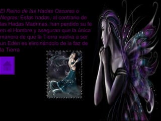Las hadas oscuras han perdido la fe en la humanidad y creen que la única forma de restaurar la Tierra es eliminar a la raza humana. Son altaneras, coléricas y vengativas, y suelen castigar o maldecir a los que se les acercan o a los niños. Aunque hacen tratos con brujas y hechiceros, siempre encuentran una forma de traicionarlos y matarlos.
