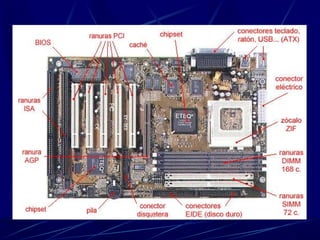 1. El documento describe los componentes principales de una computadora personal, incluyendo la carcasa, placa base, procesador, memoria, y periféricos de entrada, salida y almacenamiento.