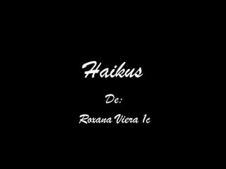 Este documento contiene cuatro haikus cortos que describen escenas naturales. Los haikus describen el cambio del día a la noche, cerezas rojas cayendo de un árbol blanco, la noche despertando al día con su ternura y un pájaro en el cielo y un pez en el mar azul.