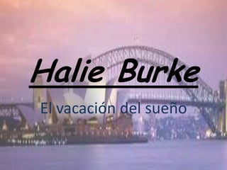 Halie Burke pasó una semana de vacaciones en Australia, donde visitó el parque de diversiones, durmió en la playa, nadó con delfines, vio animales en el zoológico, comió pizza en un barco, aprendió a bucear en el mar, y bebió durante el vuelo de regreso a casa. Dijo que la pasó de maravilla y que le gustó mucho su viaje de vacaciones a Australia.