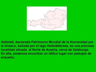 Hallstatt, una localidad en el norte de Austria declarada Patrimonio Mundial por la UNESCO, es un idílico lugar con paisajes de ensueño bañado por el lago Hallstättersee cerca de Salzburgo. El documento da la bienvenida a la producción Hallstatt en Uruguay.