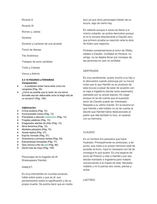 La obra describe la vida y obra de William Shakespeare. Nació en 1564 en Stratford-upon-Avon, Inglaterra y asistió a la escuela local donde recibió una educación centrada en latín. No ganó premios durante su vida, pero publicó numerosas obras incluyendo comedias, tragedias y sonetos. Algunas de sus obras más famosas son Hamlet, Romeo y Julieta, y Macbeth. La obra proporciona detalles biográficos clave sobre Shakespeare y una lista resumida de sus publicaciones.
