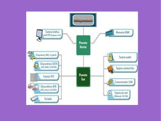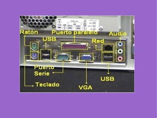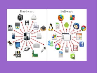 El documento habla sobre los conceptos básicos de hardware. Explica que los datos informáticos son codificados usando el sistema binario de 0s y 1s, el cual fue desarrollado por Claude Shannon. También describe los componentes clave de una computadora como la placa base, el microprocesador, la memoria y los puertos, y cómo estos trabajan juntos para procesar y almacenar información digital.