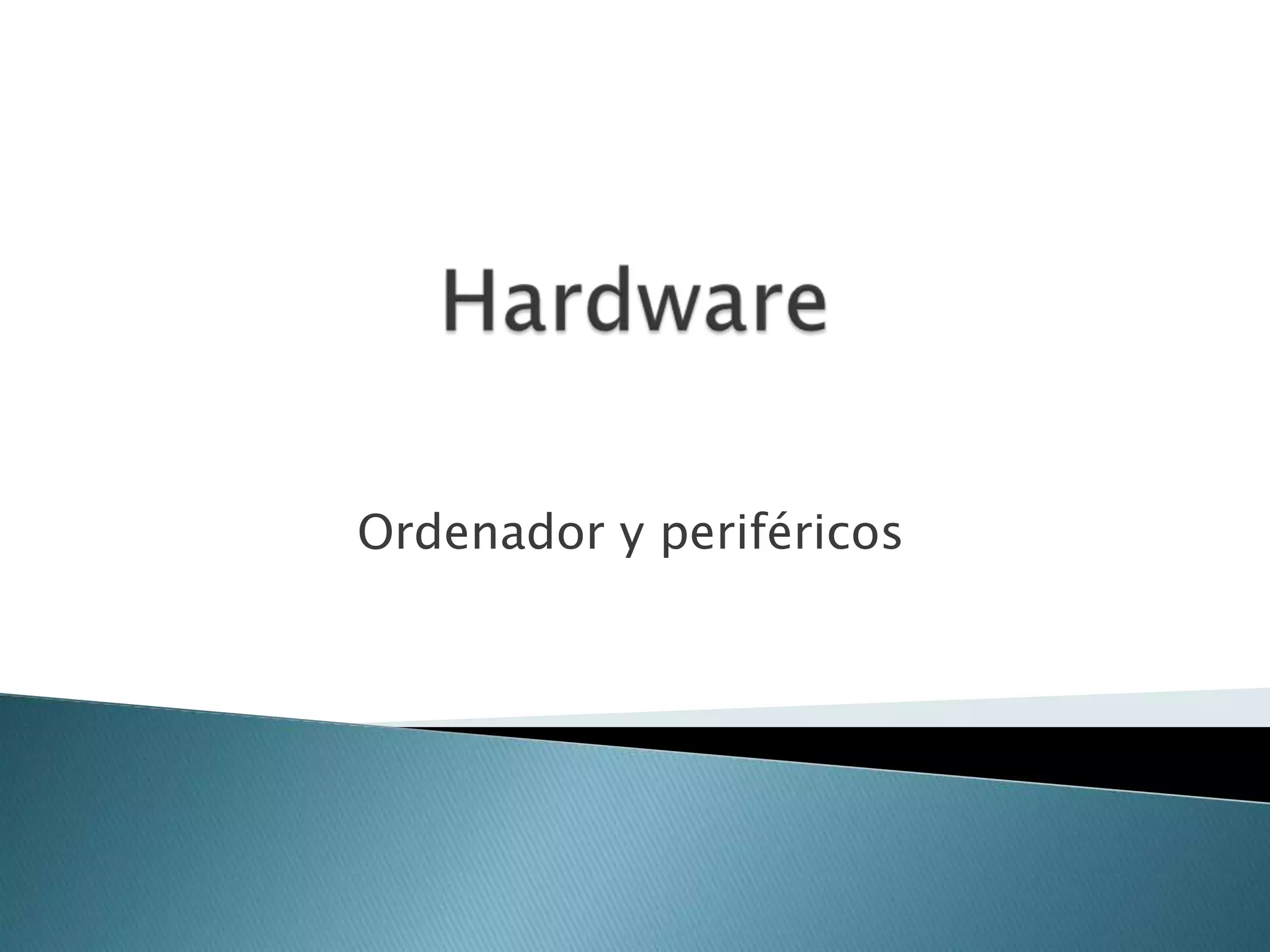 El documento habla sobre los componentes básicos de hardware de un ordenador, incluyendo la placa base, el procesador y la memoria, así como periféricos de entrada, salida, comunicaciones y almacenamiento.