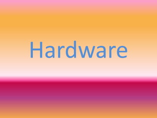 Este documento describe los principales componentes hardware de una computadora, incluyendo el gabinete, microprocesador, memoria RAM, tarjeta principal, tarjeta de video, tarjeta de audio, módem y unidades de almacenamiento como el disco duro, CD, DVD y USB. Explica brevemente la función de cada uno de estos elementos básicos que conforman una computadora.