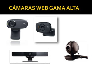 Una webcam es una cámara de video barata que se coloca cerca de un ordenador para enviar videos en vivo a través de la red. Pueden usarse para videoconferencias con familiares y amigos, teleformación, lenguaje de signos por internet, y entrevistas. Las webcam capturan imágenes en vivo y las transmiten a través de internet para que otros usuarios puedan ver eventos en directo desde cualquier parte del mundo.