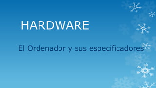 El documento describe los componentes principales de un ordenador y sus periféricos, incluyendo la placa base, procesador, memoria RAM, monitor, teclado, ratón, impresora, discos duros, y elementos de red como routers y switches. Explica las categorías de periféricos de entrada, salida, entrada y salida, y almacenamiento, dando ejemplos de cada uno.