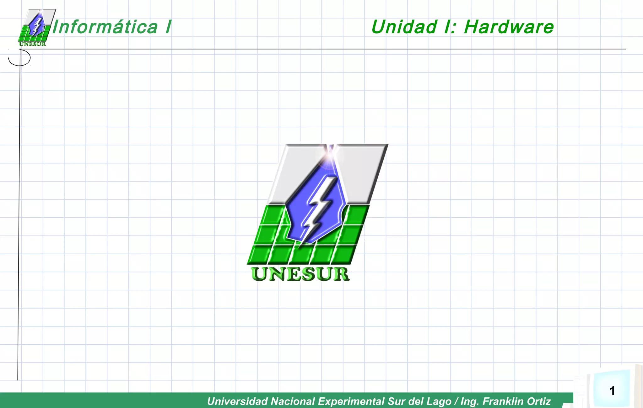 Este documento describe los conceptos básicos de hardware de computadoras. Explica la estructura básica del computador, incluyendo la unidad central de procesamiento, memoria, dispositivos de almacenamiento, entrada y salida. También define los tipos de dispositivos de almacenamiento, entrada y salida y sus funciones.