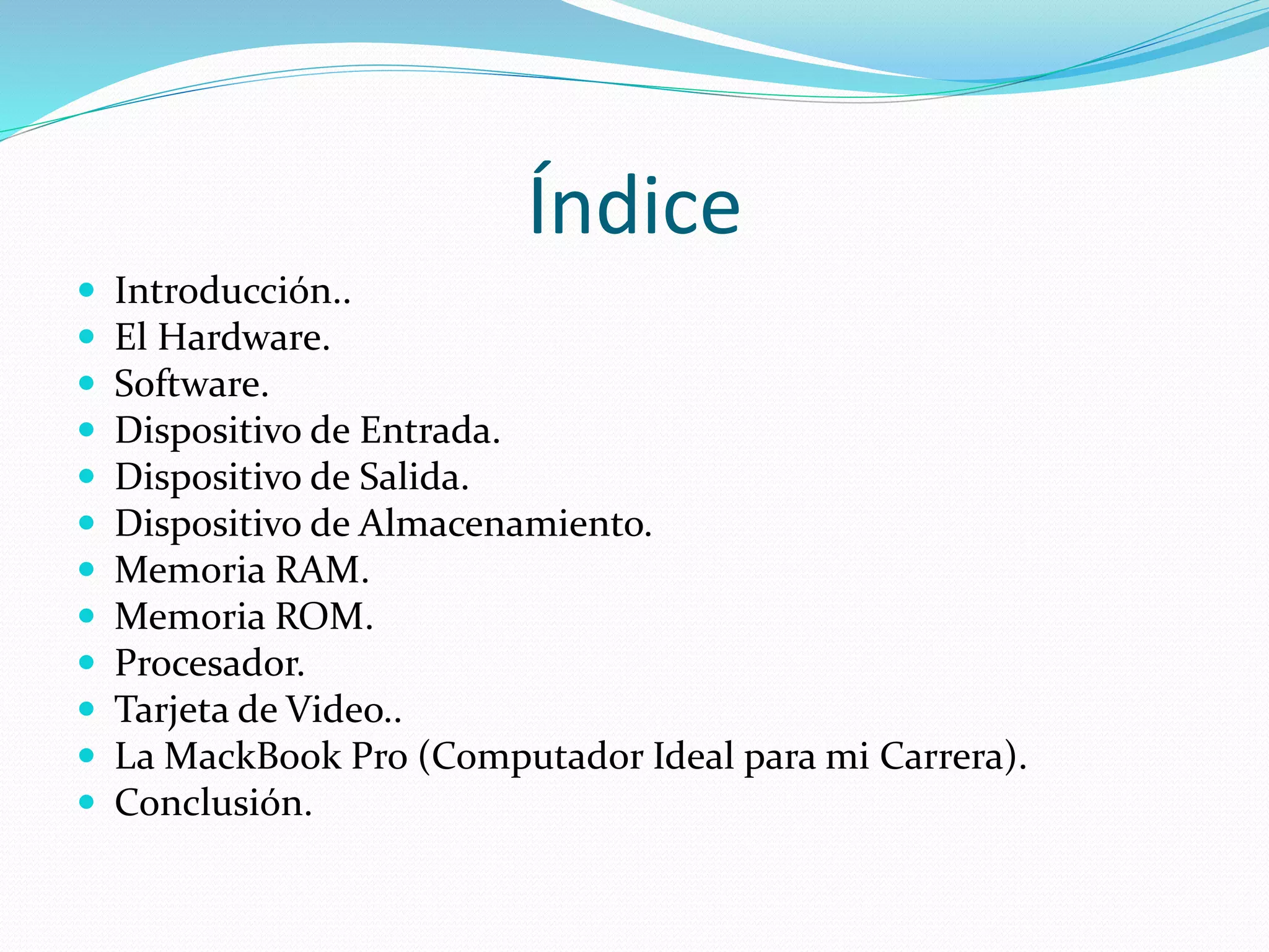 Este documento describe los componentes fundamentales de un computador, incluyendo el hardware, software, dispositivos de entrada y salida, memoria, procesador y tarjeta de video. También recomienda la computadora MacBook Pro como la ideal para su carrera debido a su capacidad de almacenamiento, memoria, gráficos y procesador rápido.