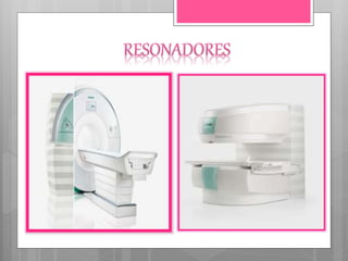 El documento describe diferentes tipos de hardware de resonancia magnética, incluyendo imanes superconductores, permanentes y resistivos, así como bobinas de gradiente, RF, y antenas de transmisión y recepción. También cubre temas como blindaje magnético y eléctrico, sala de control, y refrigeración criogénica necesaria para imanes de alta intensidad.