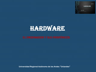 El documento describe los componentes principales del hardware de un sistema computacional. Explica que el ordenador central incluye la placa base, procesador y memoria RAM, y que se conectan varios periféricos de entrada (teclado, ratón, micrófono), salida (monitor, impresora, altavoces) y entrada/salida (pantalla táctil, tarjeta de red). También cubre los dispositivos de almacenamiento (disco duro, memorias flash, CD/DVD) y los elementos de red (router, switch, hub).