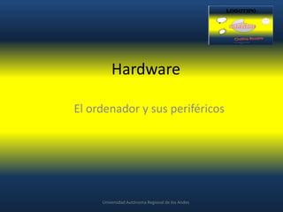 El documento describe los componentes principales de un ordenador y sus periféricos. Explica que un ordenador está compuesto por una placa base, procesador y memoria RAM, y que existen diversos periféricos de entrada como teclados, ratones y micrófonos, de salida como monitores e impresoras, de entrada y salida como pantallas táctiles y modems, y de almacenamiento como discos duros, memorias flash y unidades ópticas. Finalmente, menciona elementos de red como routers, switches y hubs.