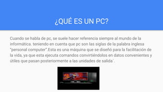 El documento proporciona una amplia descripción de los componentes y tipos de computadoras, diferenciando entre hardware y software, así como sus funciones. También aborda sistemas operativos populares como Windows, Mac OS y Linux, y detalla el concepto de antivirus y firewalls en la seguridad informática. Se discuten las características de cada tipo de software, tales como software de sistema, programación y aplicación.