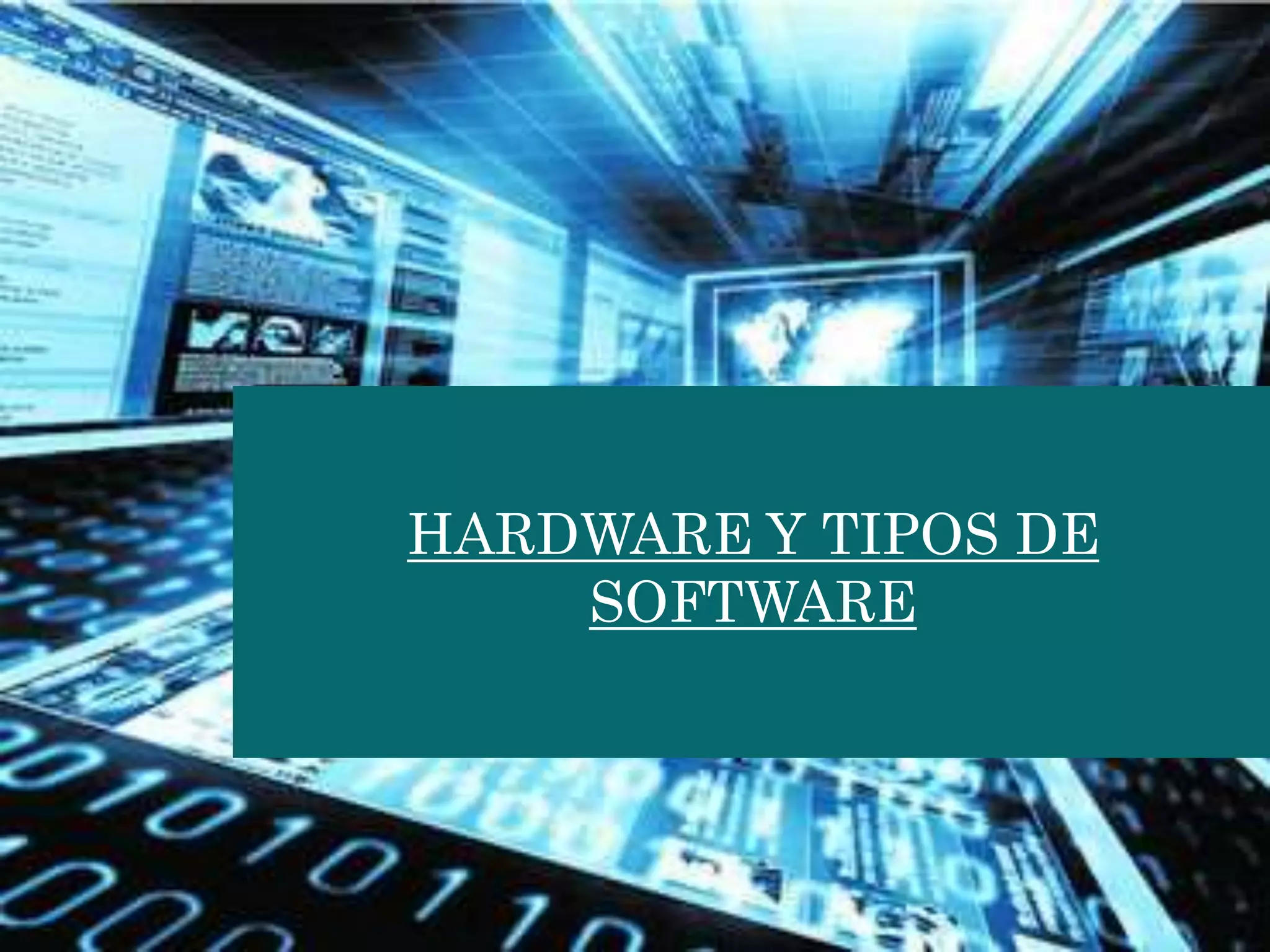 El documento describe los diferentes tipos de hardware y software. Explica que el hardware son los componentes físicos de la computadora, mientras que el software son los programas. Luego detalla los principales tipos de software, incluyendo software de sistema, software de aplicación y software de programación. El software de sistema gestiona la interacción entre hardware y usuario, mientras que el software de aplicación proporciona funcionalidad al usuario directamente.