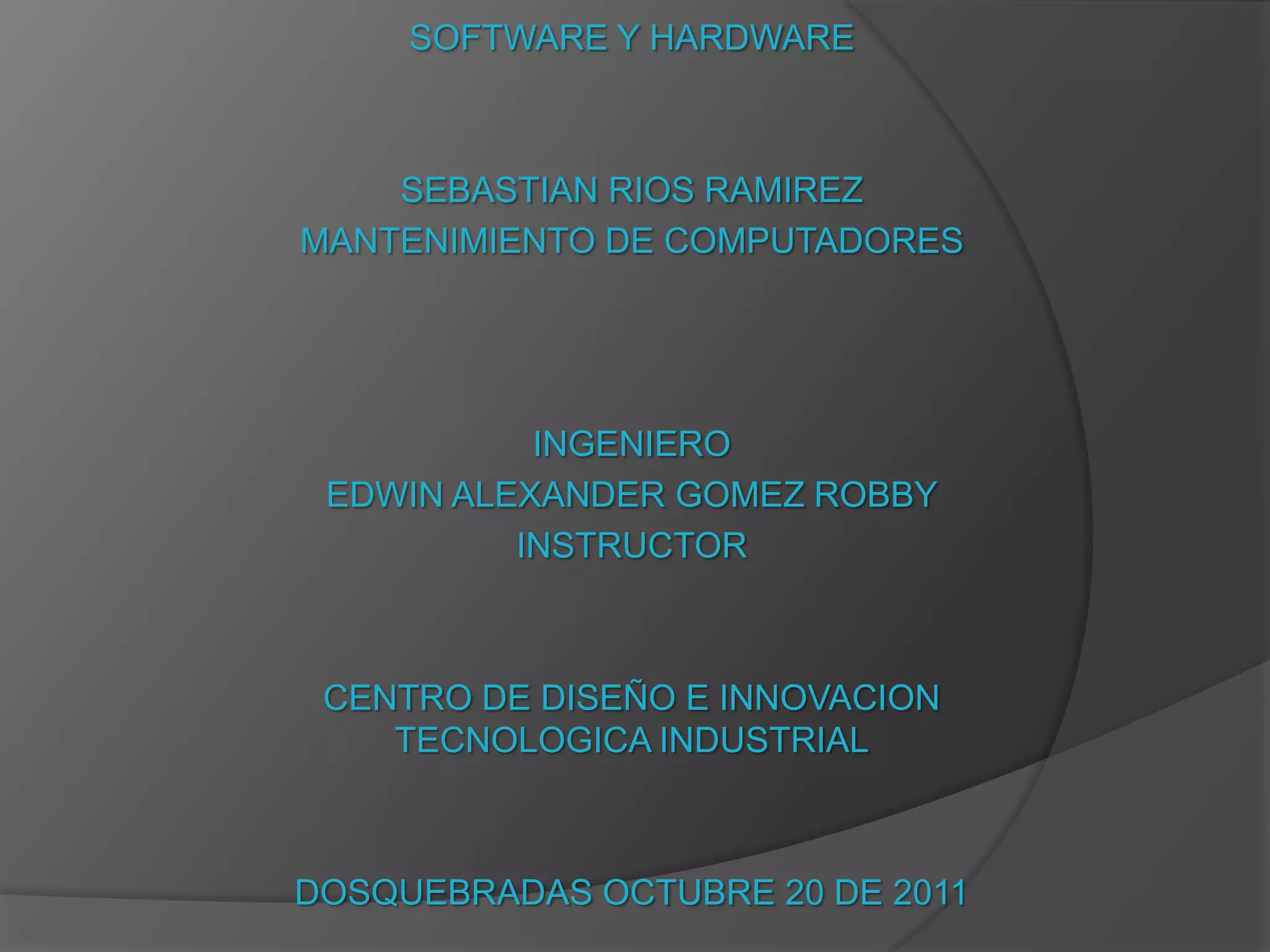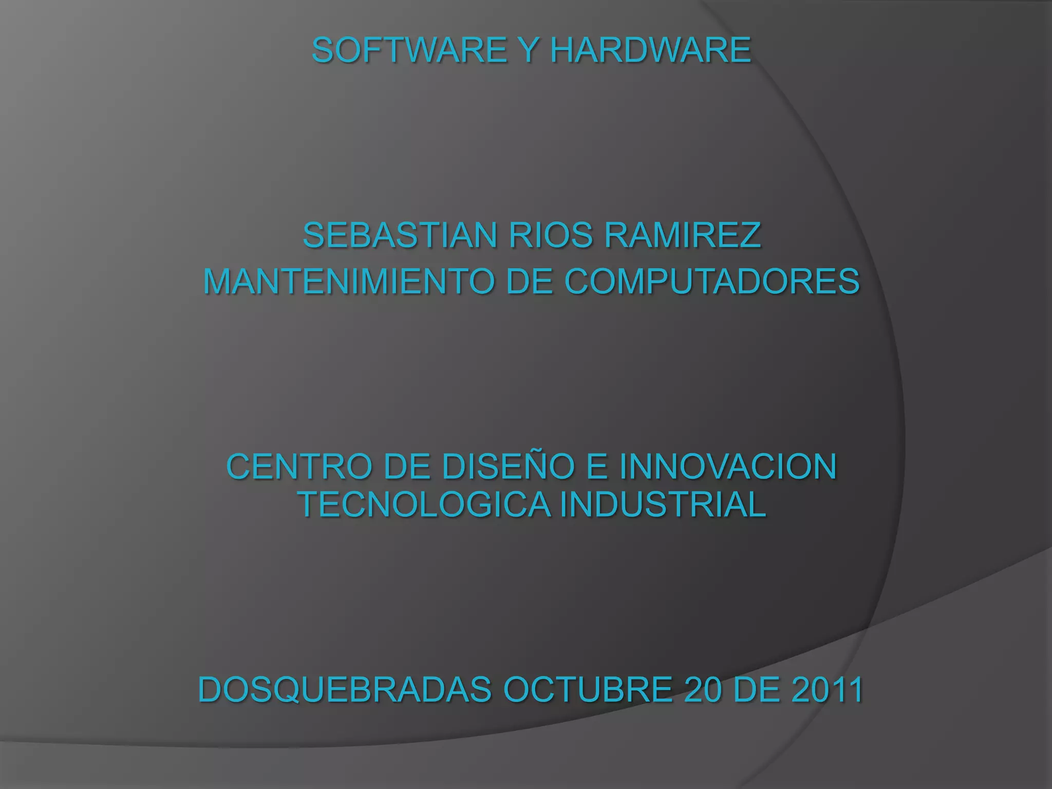 II. Define software como programas y documentación, e información de usuario. Hardware son las partes físicas como componentes eléctricos y mecánicos.