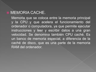 El documento habla sobre los diferentes tipos de hardware y software que existen. Describe los componentes físicos de una computadora como la placa madre, procesador, memoria RAM y periféricos. También explica los diferentes tipos de memoria como RAM, ROM, PROM y EPROM. Además, menciona los primeros sistemas operativos desarrollados como MULTICS, BDOS y MS-DOS.