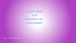 El documento describe las partes internas y externas de un computador. Explica que el hardware son las partes físicas como el teclado, monitor, mouse, unidad óptica e impresora. El software son programas como Word y Excel. Luego detalla partes internas como la tarjeta madre, memoria, procesador, tarjeta de video, unidad de disco duro y fuente de poder.