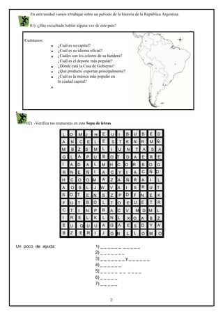 Este documento presenta un resumen de tres oraciones de un texto más largo sobre la lucha de las Abuelas de Plaza de Mayo en Argentina. Explica que las Abuelas son una organización que busca a los niños que fueron secuestrados durante la dictadura militar de 1976-1983 y que Mariana Pérez recibió una denuncia sobre su hermano desaparecido, lo fue a buscar al bar donde trabajaba y le dejó una carta contándole su historia, luego él accedió a hacerse las pruebas de ADN que confirmaron que era su herman