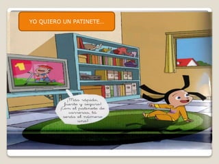 La niña le pide a su madre un patinete para su cumpleaños pero lo necesita ahora. Aunque su madre le dice que tiene muchos juguetes en su habitación, la niña explica que se le había olvidado lo mucho que le gustan jugar con ellos y prefiere esperar para el patinete.