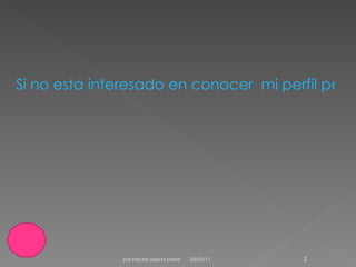 Este documento presenta el perfil personal de Héctor Ospina Parra, incluyendo su dirección, números de contacto, fecha de nacimiento y estado civil. También menciona algunos de sus objetivos como crear una empresa de servicios eléctricos y ayudar a personas necesitadas, y proporciona la fecha de cumpleaños de varias personas. El documento fue creado el 23/03/11 por Héctor Ospina Parra.