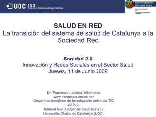 El documento resume los principales hallazgos de una investigación sobre la presencia de los actores del sistema de salud catalán en Internet y los usos de las tecnologías de la información y comunicación relacionados con la salud por parte de los ciudadanos. Se identificaron cuatro tipos de recursos web en función de su calidad e información/interacción, y se caracterizaron los usos intensivos de Internet para informarse sobre salud. Finalmente, se tipificaron a los usuarios de las TIC según su nivel de conectividad y equipamiento.
