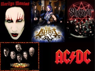 El documento habla sobre diferentes géneros musicales de metal como hard rock, death metal y glam metal. Menciona que estos géneros incluyen hard rock, death metal y glam metal. Termina con un grito de celebración por la música metal.