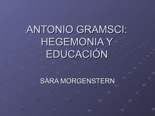 El documento analiza la obra de Antonio Gramsci, centrándose en su visión de la educación y la hegemonía en la sociedad del conocimiento. Se destacan sus aportes sobre la importancia del consenso social en la construcción de la hegemonía y la relación entre base económica y superestructuras, enfatizando que la educación no solo reproduce la dominación económica, sino que también puede ser un espacio para la resistencia y la transformación social. Gramsci propone la formación de intelectuales orgánicos del proletariado para desarrollar una conciencia de clase que permita un cambio estructural desde abajo.