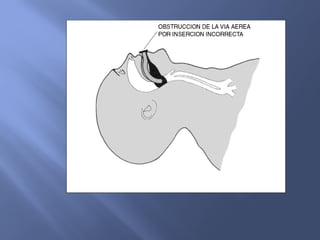 El documento detalla procedimientos básicos en medicina relacionados con el atragantamiento, incluyendo su definición, causas y la maniobra de Heimlich como una técnica crucial para desobstruir las vías respiratorias. Se describe cómo realizar la maniobra tanto en adultos como en bebés, además de abordar la importancia de la intervención rápida ante la asfixia. También se proporciona información sobre la anatomía de las vías respiratorias y dispositivos utilizados para su manejo.