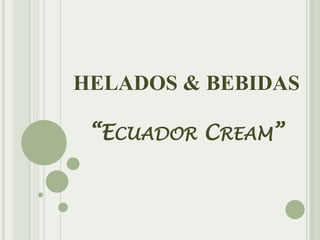 La heladería HELADOS & BEBIDAS "Ecuador Cream" ofrece una variedad de helados elaborados a base de cocteles, bebidas y frutas típicas ecuatorianas, con el objetivo de que los clientes conozcan la cultura del Ecuador a través de sus productos. La empresa busca liderar el mercado con sabores innovadores y satisfacer las necesidades de los clientes ecuatorianos y extranjeros. Los helados incluyen opciones con y sin alcohol para clientes de todas las edades.