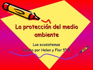El documento resume los conceptos básicos de ecosistemas, incluyendo las definiciones de ecosistema, biosfera y comunidad. Explica que los seres vivos se agrupan en especies y poblaciones y se relacionan entre sí y con su medio físico terrestre o acuático. Describe las redes alimentarias formadas por productores, consumidores y descomponedores. Finalmente, define medio ambiente y espacio protegido, e indica algunos problemas ambientales causados por humanos y formas en que los ciudadanos y estados