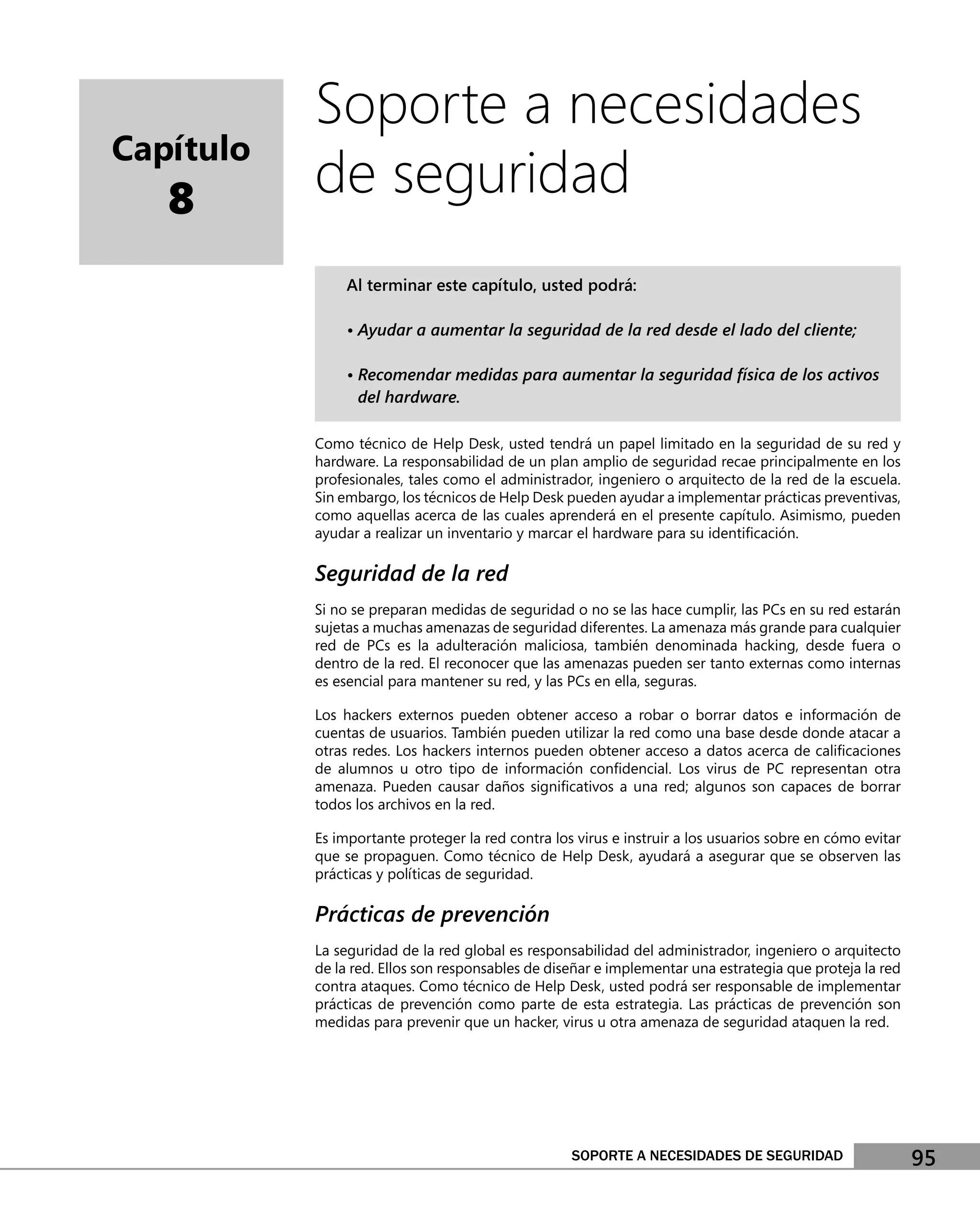 Este documento describe varias prácticas de seguridad que un técnico de Help Desk puede implementar para aumentar la seguridad de la red y el hardware de una escuela. Estas incluyen instalar y actualizar software antivirus, configurar el uso de contraseñas complejas, y asegurar el hardware mediante un inventario y marcado de los activos con números de identificación. El documento también discute amenazas comunes a la seguridad como hackers y virus, y el papel limitado pero importante de un técnico de Help Desk en la implementación de prácticas