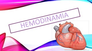 El documento describe los conceptos básicos de hemodinámica, incluyendo el flujo sanguíneo, la presión sanguínea, la resistencia sanguínea y las partes del sistema circulatorio. Explica las leyes de la circulación de la sangre, las relaciones entre la presión, el flujo y la resistencia, y cómo la sangre se comporta como un fluido no newtoniano.