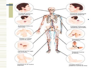 Este documento describe los tipos de hemorragias, incluyendo hemorragias capilares, venosas y arteriales. Explica cómo tratar hemorragias externas e internas, así como hemorragias por orificios naturales como la nariz, oídos y boca. Finalmente, define el shock hipovolémico y sus síntomas, y las medidas de manejo prehospitalario para este tipo de emergencia.