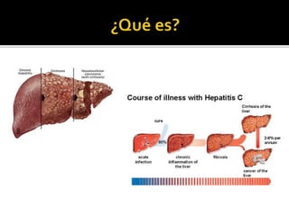 La hepatitis C es una enfermedad viral que causa inflamación del hígado, y puede llevar a cirrosis y complicaciones graves como cáncer de hígado. Se transmite principalmente a través del contacto con sangre infectada, y aunque muchos no presentan síntomas, la infección crónica puede provocar problemas de salud significativos. Existen tratamientos como Sovaldi que muestran alta efectividad, pero su alto costo plantea desafíos para el acceso y la cobertura sanitaria.