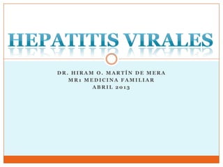 Este documento resume la hepatitis viral, definiendo cada tipo de hepatitis viral, describiendo su anatomía, fisiología, clasificación, manifestaciones clínicas, diagnóstico, tratamiento y prevención. El documento también revisa brevemente la epidemiología de cada tipo de hepatitis viral y establece los criterios para su diagnóstico diferencial.