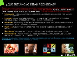 El documento detalla la importancia de la nutrición y el uso de suplementos para deportistas, advirtiendo sobre sustancias prohibidas que pueden dañar la salud y el rendimiento. Describe varios productos diseñados para apoyar el entrenamiento, recuperación y masa muscular, como Fórmula 1 Sport, que combina carbohidratos y proteínas. También menciona la responsabilidad del deportista sobre lo que consume, enfatizando la importancia de una nutrición adecuada y la prevención del dopaje.