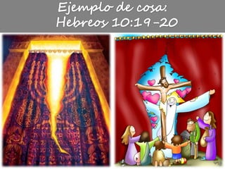 Este documento explica el principio bíblico de los tipos, que declara que es necesario reconocer e interpretar los tipos en las Escrituras para comprender plenamente los pasajes. Los tipos son ilustraciones divinamente preparadas de verdades bíblicas y pueden ser personas, cosas o eventos. Se proporcionan ejemplos de tipos de personas como Jonás y Adán; tipos de cosas como el velo del templo y la serpiente de bronce; y tipos de eventos como el paso del Mar Rojo. Se establecen tres reglas para ident