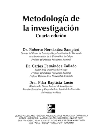 Este documento presenta una introducción a los enfoques cuantitativo y cualitativo en la investigación científica. Explica las similitudes y diferencias entre ambos enfoques, así como sus características y procesos. Además, introduce los conceptos básicos sobre el planteamiento del problema, el marco teórico, la definición del alcance y las hipótesis en una investigación cuantitativa. El documento provee una guía general sobre cómo desarrollar una investigación científica desde sus primeras etapas.
