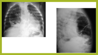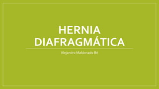 La hernia diafragmática congénita es un defecto congénito del diafragma que permite el paso de vísceras abdominales a la cavidad torácica, causando hipoplasia pulmonar e hipertensión pulmonar. Afecta más comúnmente el lado izquierdo y se asocia a otros defectos en el 7% de los casos. El problema fundamental en recién nacidos con esta condición es fisiológico debido a la hipoplasia pulmonar y hipertensión pulmonar, por lo que los esfuerzos terapéuticos se enfoc