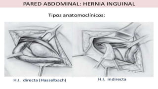 Este documento describe la técnica quirúrgica de plastía inguinal para reparar una hernia en la región inguinal. Incluye la anatomía del conducto inguinal, tipos de hernias inguinales, y los pasos quirúrgicos para disecar el saco herniario, cerrar el defecto y suturar los tejidos. El procedimiento se realiza bajo anestesia regional para corregir el defecto de la pared abdominal y restaurar la anatomía normal del canal inguinal.