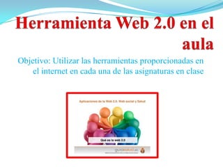 El documento habla sobre la Web 2.0 y cómo puede usarse en la escuela. Explica que la Web 2.0 permite compartir y modificar información en línea de manera colaborativa. Algunas herramientas de la Web 2.0 como blogs, videos y fotos pueden crearse por estudiantes y compartirse para comentar. Esto permite nuevas formas de enseñar y aprender en la escuela a través de la interacción en línea.