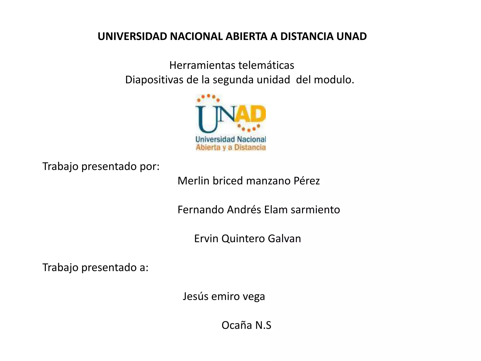 Este documento presenta una diapositiva de la segunda unidad de un módulo sobre herramientas telemáticas. Explica conceptos generales sobre el entorno web y sistemas operativos, e introduce los temas de internet y riesgos asociados como malware y virus. El documento fue presentado por tres estudiantes a su profesor Jesús Emiro Vega.