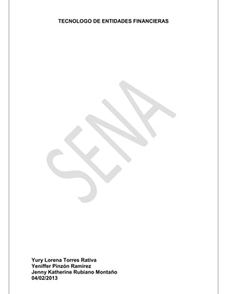 Este documento describe el rol del tecnólogo de entidades financieras. Explica que el proyecto se enfoca en la gestión de información en entidades bancarias e identificar áreas de mejora en sus procesos administrativos y de comunicación. Detalla los resultados de aprendizaje que incluyen aplicar estándares de calidad y evaluar planes de mejora. Además, presenta las fases del proyecto de análisis, ejecución y control/evaluación.