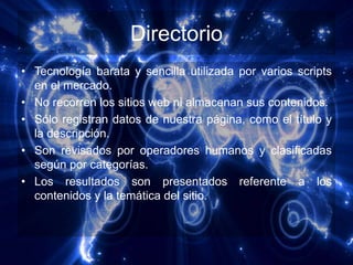 Este documento describe diferentes tipos de herramientas de búsqueda de información en Internet como directorios, motores de búsqueda, metabuscadores, agentes inteligentes y RSS. También proporciona estrategias para realizar búsquedas efectivas como usar palabras clave específicas y excluir términos no deseados.