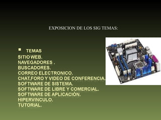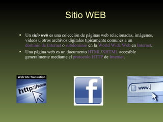 Un sitio web es una colección de páginas web relacionadas alojadas en un dominio de Internet. Los sitios web incluyen comunidades virtuales como Facebook y MySpace, y son visualizados a través de navegadores como Firefox y Chrome. Otros temas cubiertos son buscadores, correo electrónico, chat, foros, videoconferencia, software de sistema y aplicaciones, software libre y comercial, e hipervínculos.