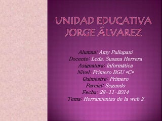 El documento describe las herramientas de la Web 2.0, incluyendo blogs, wikis, redes sociales, y entornos para compartir recursos. Explica que la Web 2.0 se caracteriza por la participación activa de los usuarios como contribuidores de contenido, en comparación con sitios web estáticos donde los usuarios solo observan pasivamente el contenido. También discute brevemente los derechos de autor y la seguridad asociados con el contenido generado por los usuarios en la Web 2.0.