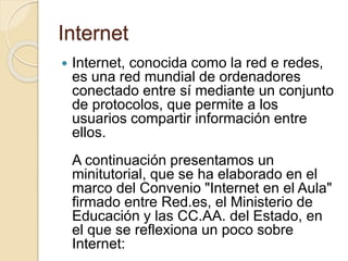 Este documento describe varias herramientas de la Web 2.0 como blogs, wikis, YouTube y Flickr que permiten compartir información en línea. Explica que los blogs son páginas web con entradas ordenadas cronológicamente en sentido inverso, Wikispaces permite la edición compartida de documentos en línea, YouTube y Flickr son populares plataformas para compartir videos y fotos respectivamente, y SlideShare permite compartir presentaciones. En conclusión, resume que estas herramientas enseñan cómo subir y compartir diferentes tipos de contenido y son importantes