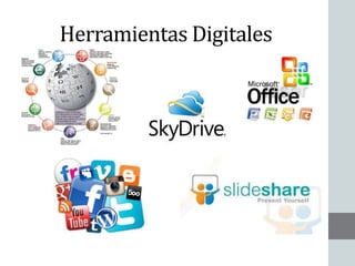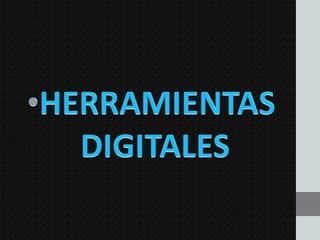 Las herramientas digitales educativas son programas y plataformas que permiten a los docentes crear contenidos digitales e implementar actividades educativas interactivas. Su objetivo es conocer y utilizar de manera crítica y innovadora las tecnologías más comunes en el contexto educativo, como wikis para trabajo colaborativo, lectores RSS para compartir información actualizada, redes sociales para interactuar con estudiantes y plataformas como SlideShare para compartir presentaciones.