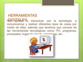 Este documento describe diferentes herramientas digitales para la educación, incluyendo objetos de aprendizaje, software de trabajo colaborativo, software libre y herramientas para educación en línea. Las herramientas digitales son importantes para estudiantes y profesores porque permiten realizar actividades didácticas y culturales y buscar información, además de mejorar el aprendizaje.